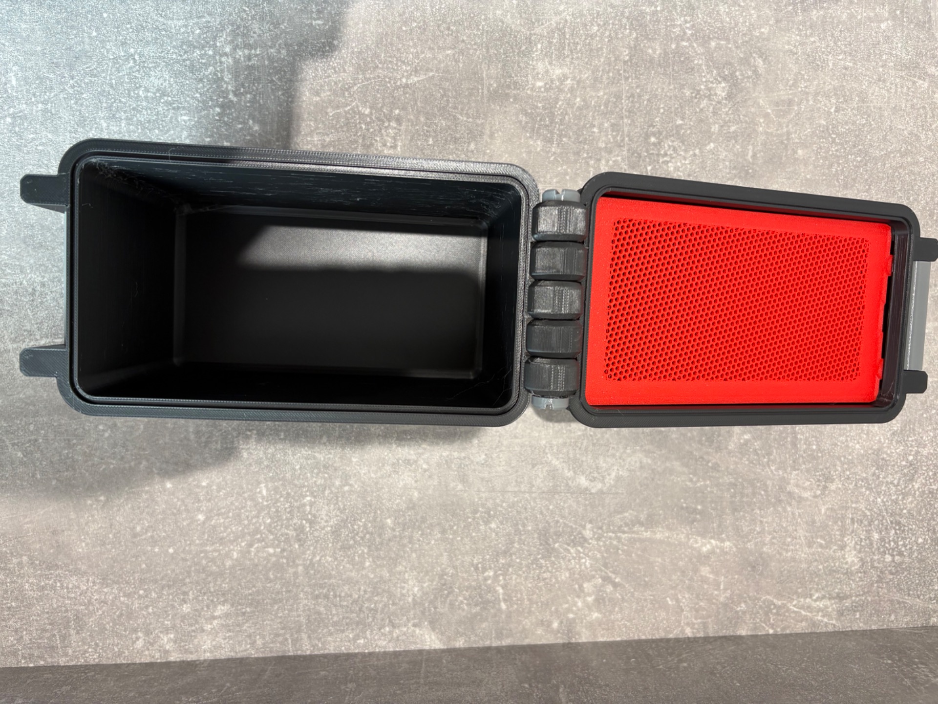 "AMMO" Style Storage Box. Holds approximately 900g of Pellets. Custom Locking Latch with Pellet Name on it. The lid comes with a built in "Pellet Drying System" (Silica Gel) to keep those Pellets Dry!